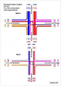 Forgalmi vizsgálat az átadási (2011) és nagytávú (2030) közúthálózaton várható mértékadó óra forgalmi terheléseinek meghatározása a bírálati terv alapján szükséges módosítások szerint. A számított forgalmi terhelések alapján csomóponti forgalomáramlási adatok meghatározása a 403. sz., 4105.j., 49.sz. és a 41.sz. utak csomópontjaiban.